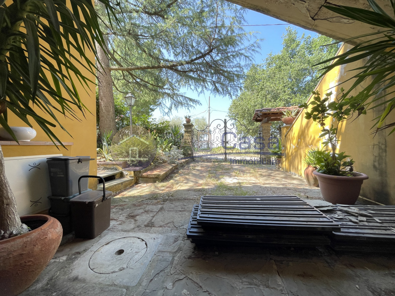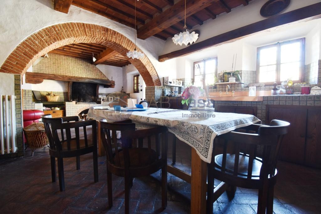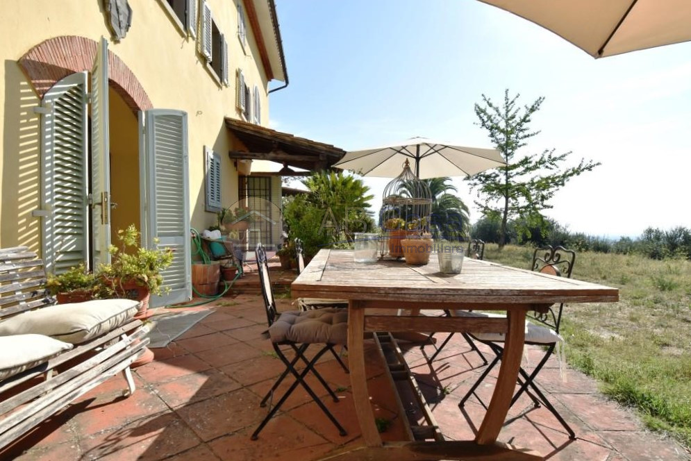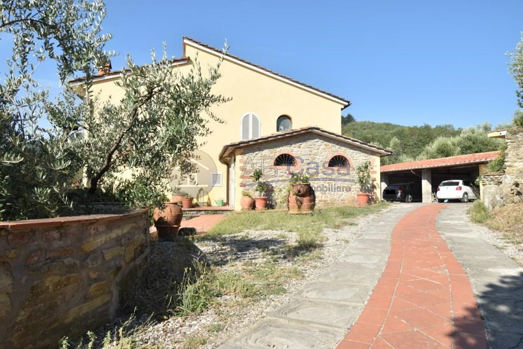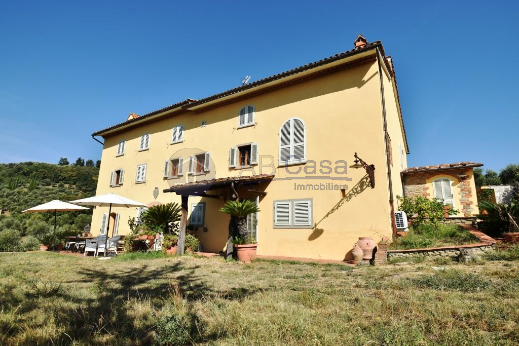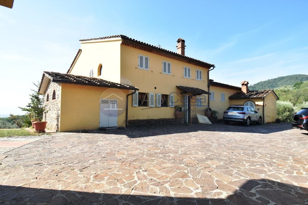 Località Gello- Pistoia In meraviglioso contesto collinare sopra Pistoia, a pochi minuti dalla città, immerso nel verde, proponiamo casale rustico in posizione dominante con splendida vista. La cascina è raggiungibile tramite una strada privata che attraversa l'uliveta di circa cinque ettari. L'immobile è stato ristrutturato negli ultimi dieci anni, mantenendo invariato lo stile rustico originale. Il casale è attualmente un'unica unità immobiliare divisa in due porzioni abitative con ingressi indipendenti. Una parte è disposta su piu livelli con ingresso al piano terra su ampio open space con camino dal quale si accede alla cucina abitabile. I due piani superiori sono raggiungibili da un suggestivo ballatoio, che si affaccia sul piano terra appena descritto, dove troviamo la zona notte composta da quattro ampie camere e tre bagni ristrutturati con rivestimenti in maiolica di cui uno adiacente alla zona benessere con sauna. L'altro appartamento si dispone al piano terra con ingresso su open space anch'esso con camino e cucina in muratura, zona lavanderia e ripostiglio;scendendo alcuni scalini troviamo la zona notte e il bagno. Adiacente a quest'ultima porzione troviamo un ampio piazzale con loggiato ad uso parcheggio, oltre a splendido giardino attrezzato. Progetto approvato per la realizzazione di una piscina.