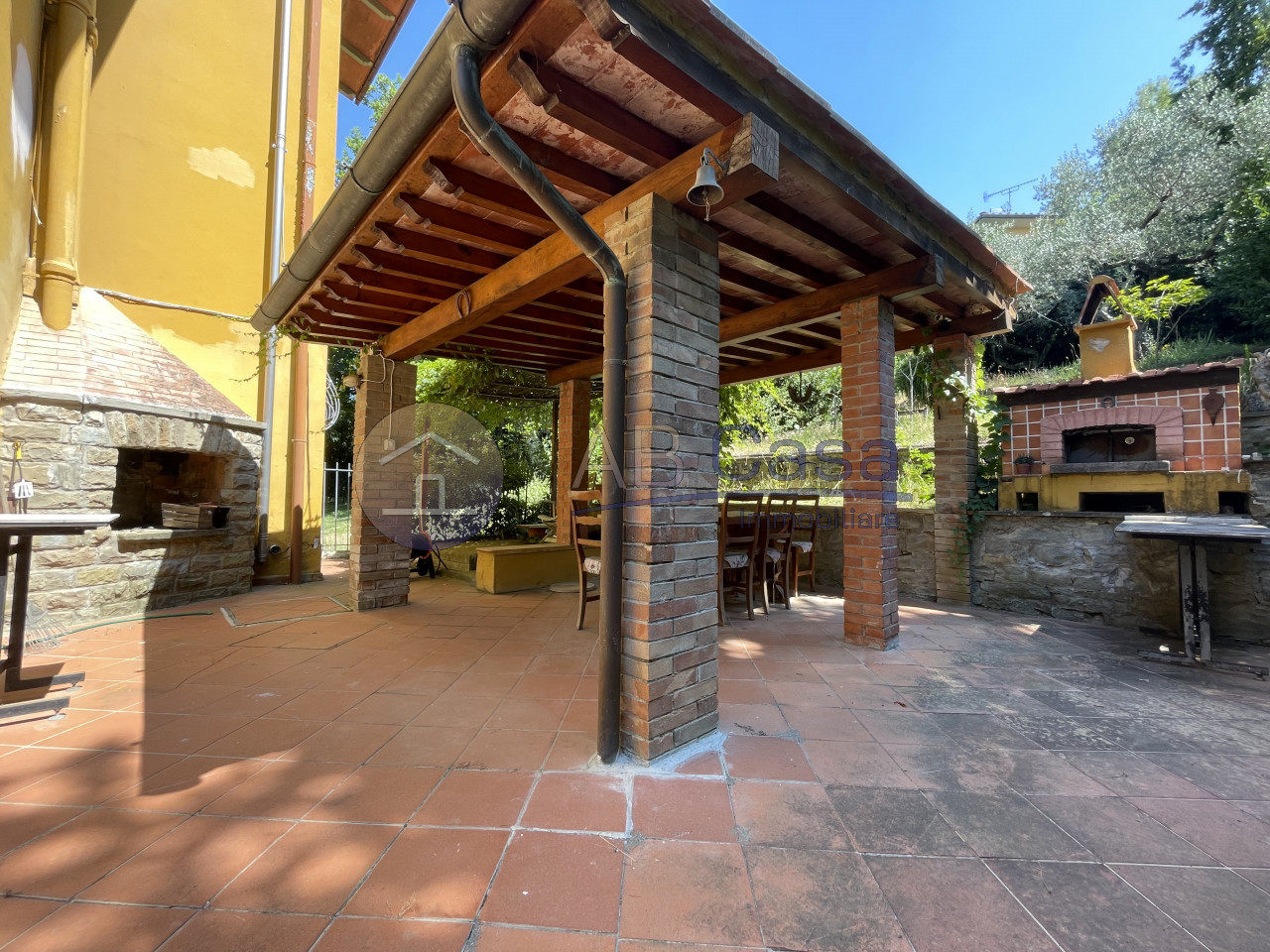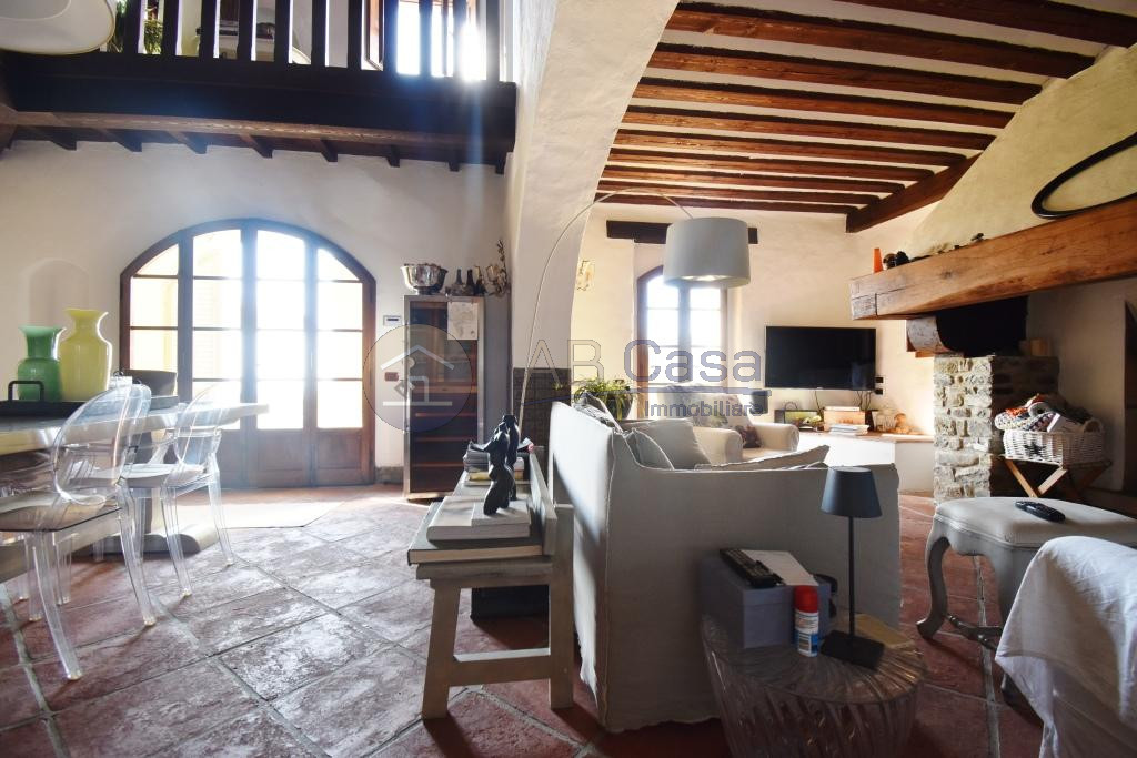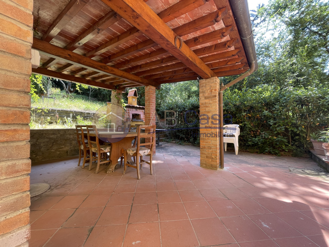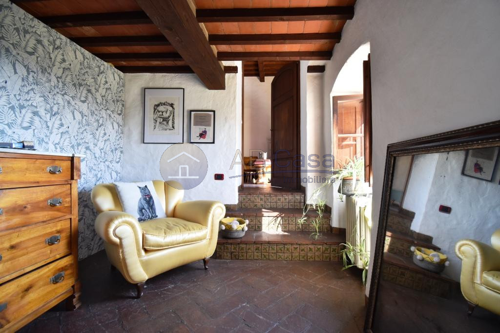 Località Gello- Pistoia In meraviglioso contesto collinare sopra Pistoia, a pochi minuti dalla città, immerso nel verde, proponiamo casale rustico in posizione dominante con splendida vista. La cascina è raggiungibile tramite una strada privata che attraversa l'uliveta di circa cinque ettari. L'immobile è stato ristrutturato negli ultimi dieci anni, mantenendo invariato lo stile rustico originale. Il casale è attualmente un'unica unità immobiliare divisa in due porzioni abitative con ingressi indipendenti. Una parte è disposta su piu livelli con ingresso al piano terra su ampio open space con camino dal quale si accede alla cucina abitabile. I due piani superiori sono raggiungibili da un suggestivo ballatoio, che si affaccia sul piano terra appena descritto, dove troviamo la zona notte composta da quattro ampie camere e tre bagni ristrutturati con rivestimenti in maiolica di cui uno adiacente alla zona benessere con sauna. L'altro appartamento si dispone al piano terra con ingresso su open space anch'esso con camino e cucina in muratura, zona lavanderia e ripostiglio;scendendo alcuni scalini troviamo la zona notte e il bagno. Adiacente a quest'ultima porzione troviamo un ampio piazzale con loggiato ad uso parcheggio, oltre a splendido giardino attrezzato. Progetto approvato per la realizzazione di una piscina.