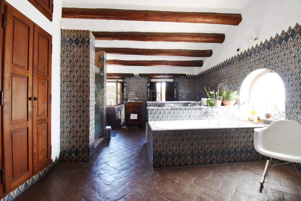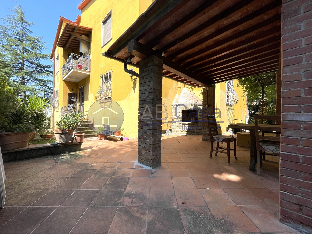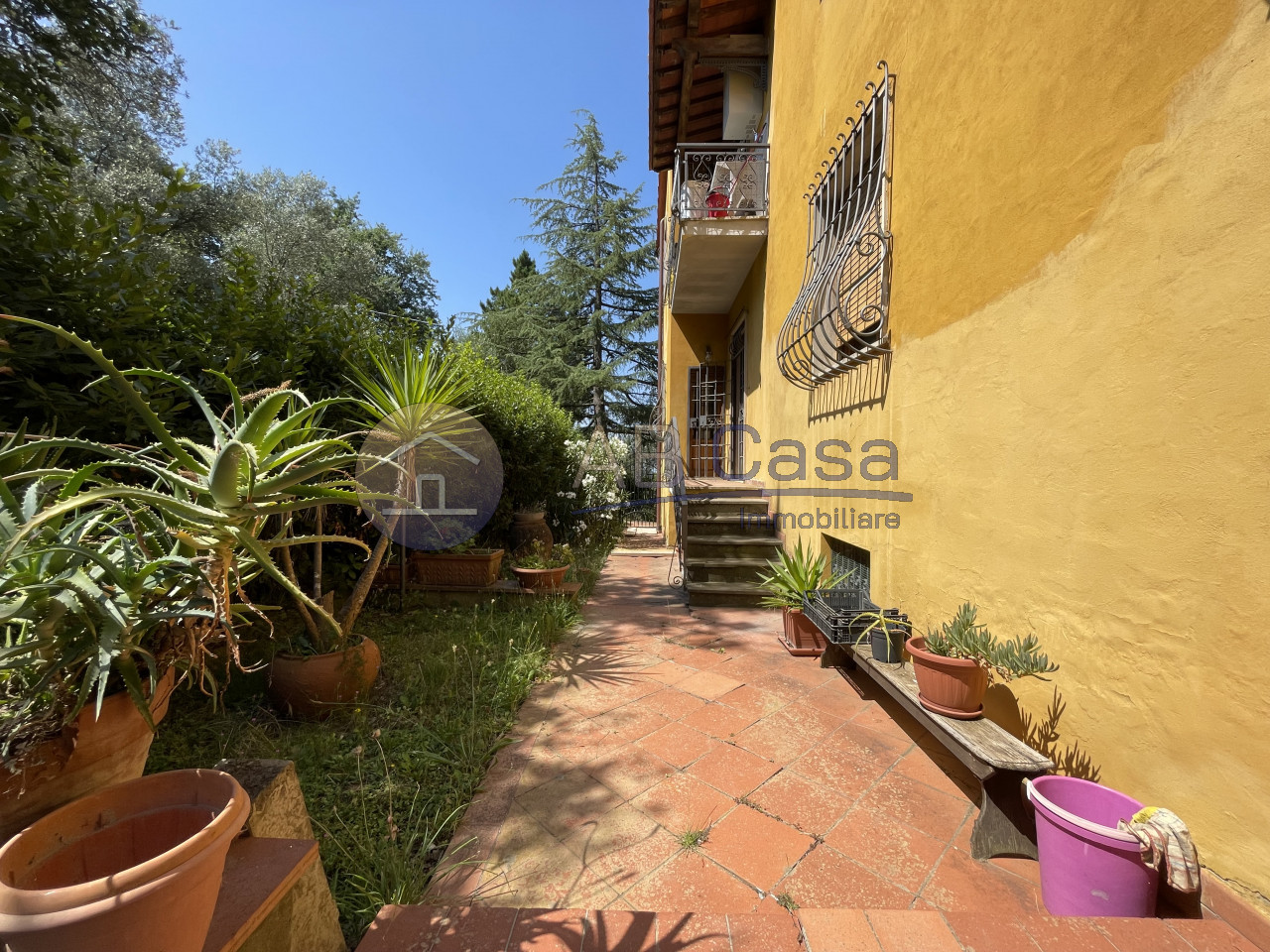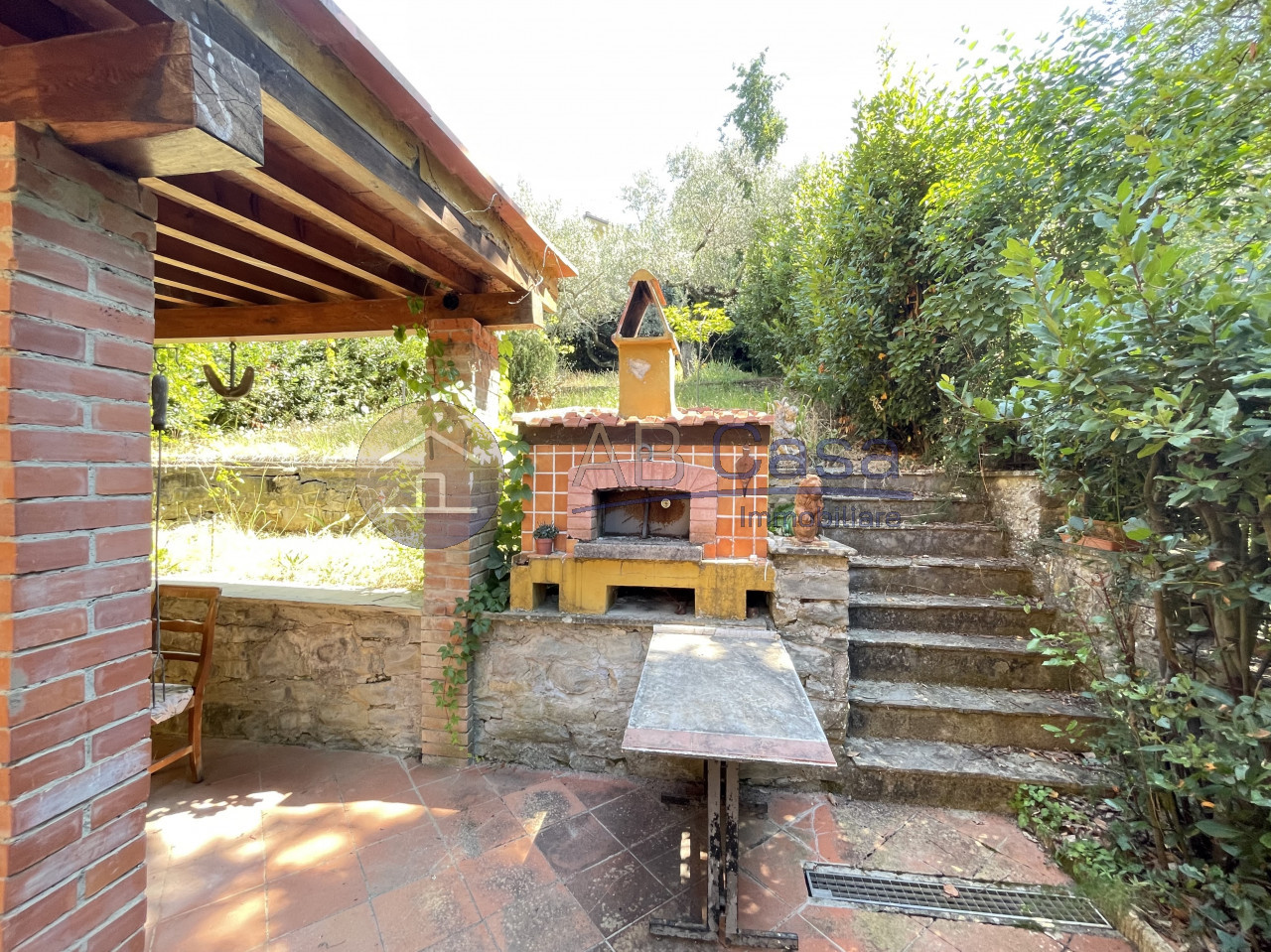 Località Gello- Pistoia In meraviglioso contesto collinare sopra Pistoia, a pochi minuti dalla città, immerso nel verde, proponiamo casale rustico in posizione dominante con splendida vista. La cascina è raggiungibile tramite una strada privata che attraversa l'uliveta di circa cinque ettari. L'immobile è stato ristrutturato negli ultimi dieci anni, mantenendo invariato lo stile rustico originale. Il casale è attualmente un'unica unità immobiliare divisa in due porzioni abitative con ingressi indipendenti. Una parte è disposta su piu livelli con ingresso al piano terra su ampio open space con camino dal quale si accede alla cucina abitabile. I due piani superiori sono raggiungibili da un suggestivo ballatoio, che si affaccia sul piano terra appena descritto, dove troviamo la zona notte composta da quattro ampie camere e tre bagni ristrutturati con rivestimenti in maiolica di cui uno adiacente alla zona benessere con sauna. L'altro appartamento si dispone al piano terra con ingresso su open space anch'esso con camino e cucina in muratura, zona lavanderia e ripostiglio;scendendo alcuni scalini troviamo la zona notte e il bagno. Adiacente a quest'ultima porzione troviamo un ampio piazzale con loggiato ad uso parcheggio, oltre a splendido giardino attrezzato. Progetto approvato per la realizzazione di una piscina.