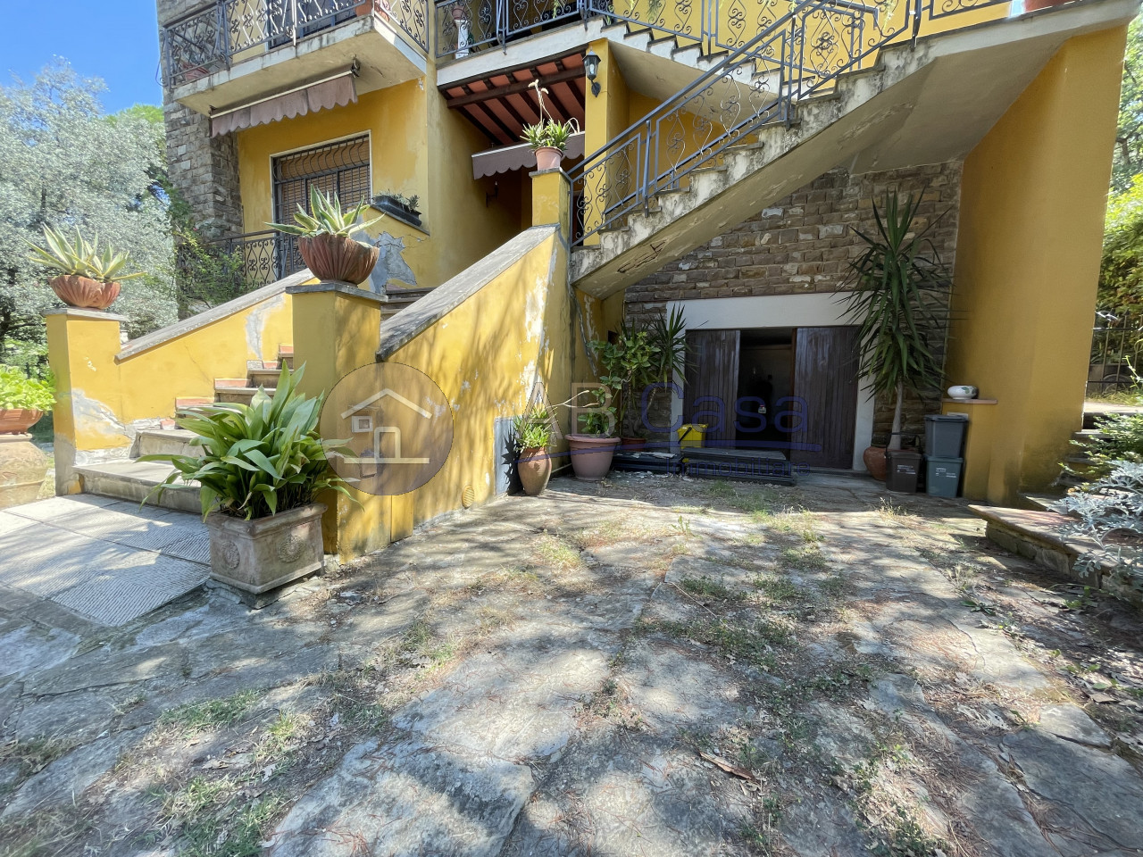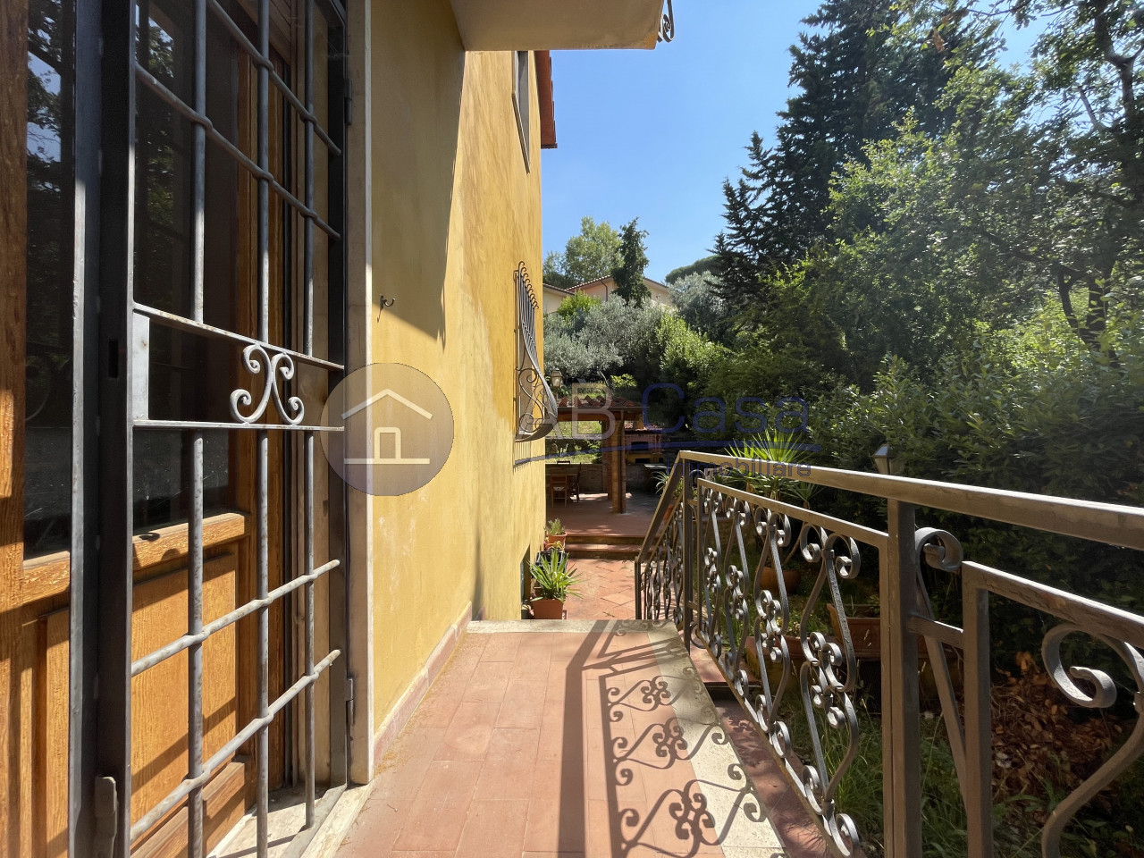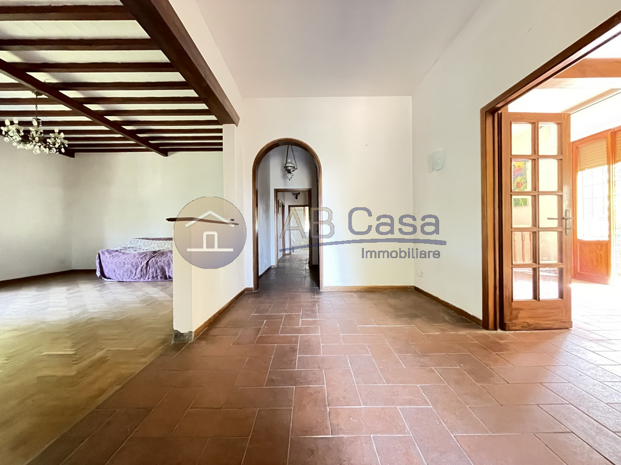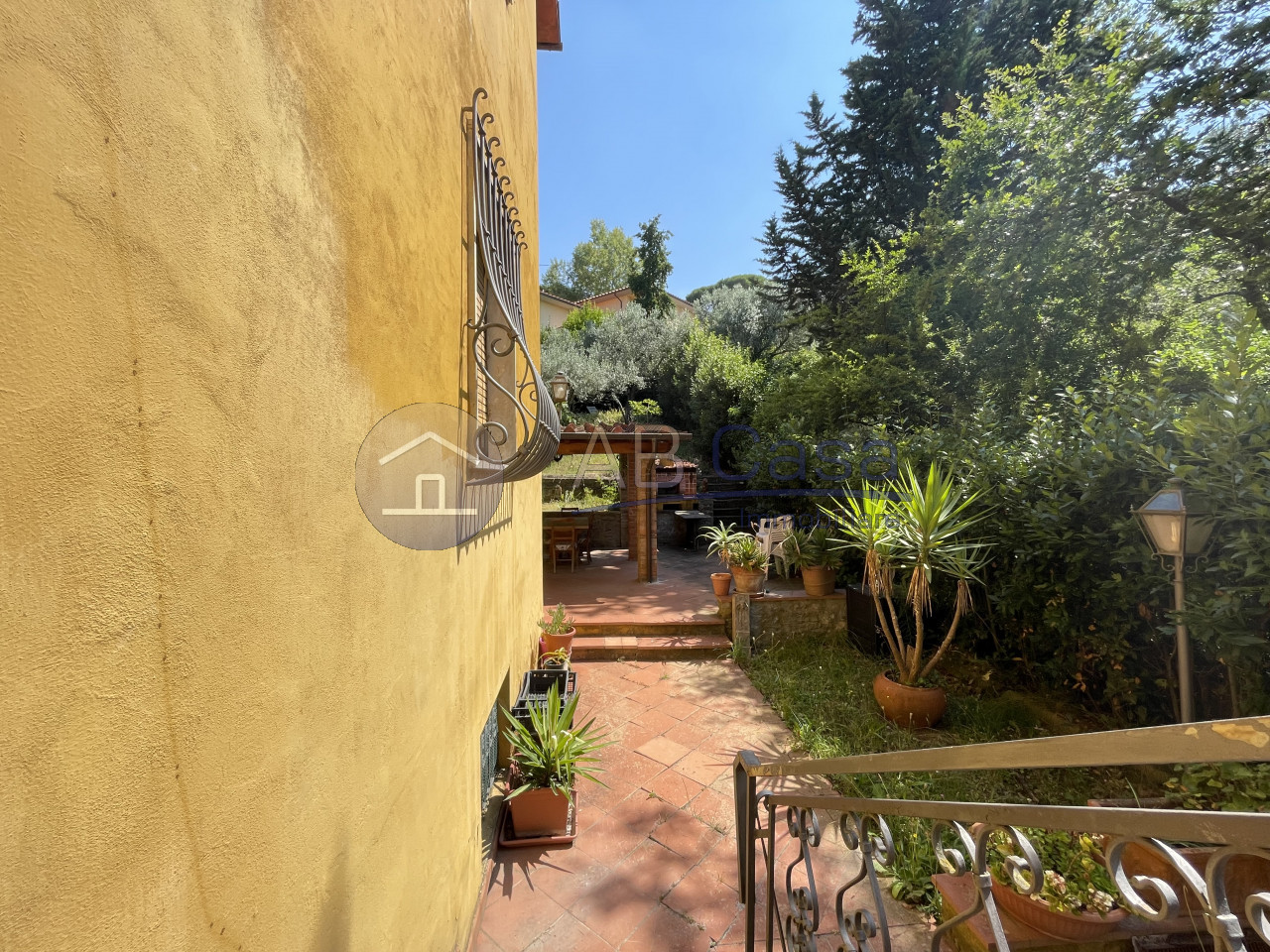 Bellosguardo In contesto bifamiliare inserito nella tranquillità e nel verde delle colline sopra Careggi, si propone appartamento al piano terra rialzato con ampi spazi interni e grande giardino. L'immobile è composto da ingresso, doppia sala di 40 mq con camino e balcone, cucina e sala pranzo cha consente l'uscita all'esterno. Un ampio disimpegno con armadio a muro ci conduce alla zona notte caratterizzata da 2 ampie camere matrimoniali, uno studio dal quale si accede ad un terrazzo ed infine il bagno finestrato. Una scala a chiocciola presente nella sala pranzo permette l'accesso dall'interno dell'abitazione al garage di 80 mq con bagno finestrato e cantina sottoscala. Completa la proprietà il giardino che si dispone sia lateralmente che dietro alla proprietà per un totale di circa 200 mq caratterizzato dalla presenza di una resede con ampio pergolato e barbecue in muratura e da un appezzamento di terreno a terrazza sovrastante. Libero subito. Da ristrutturare.